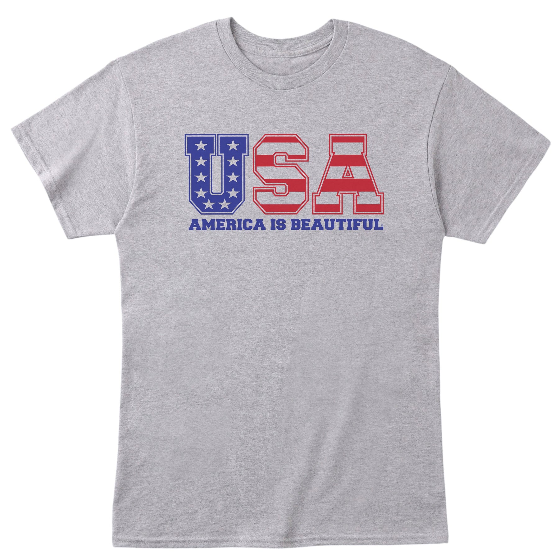 USA Message Tee 1.0 Graphic by America The Beautiful®, Red and Blue On Grey - M